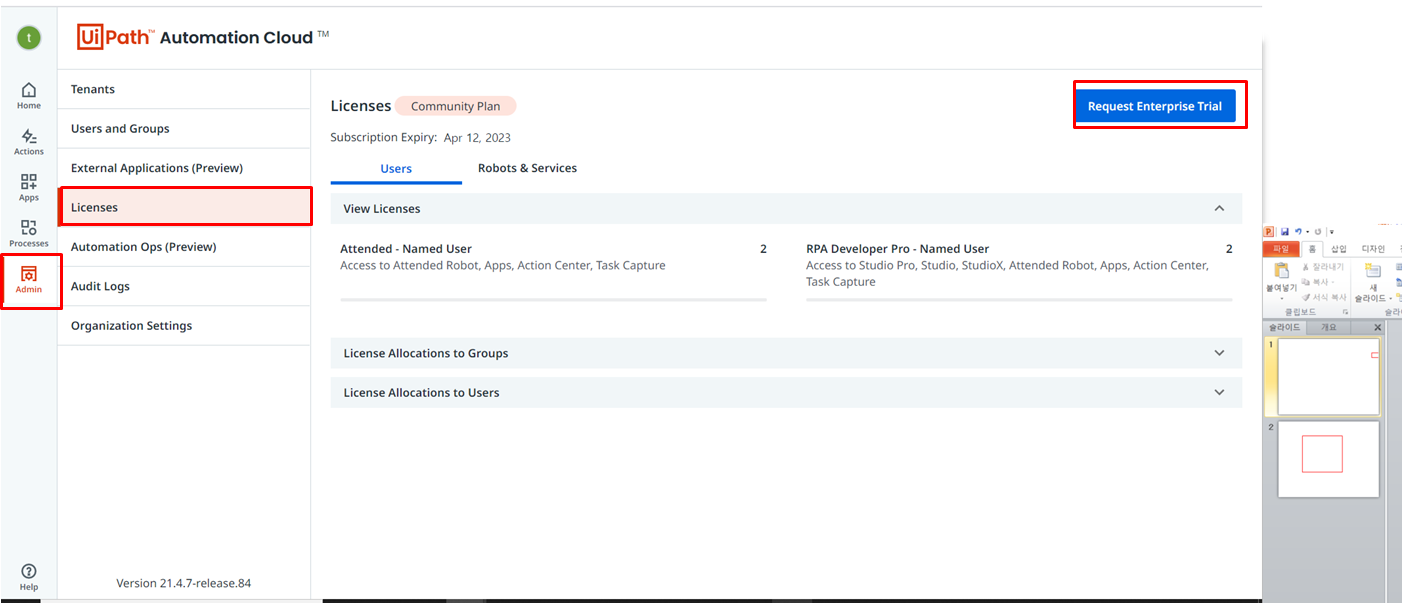 그래서 이번시간에는 Community 버전에서 Enterpirce Trial 버전으로 변경하는 방법을 해 보도록 하겠다.