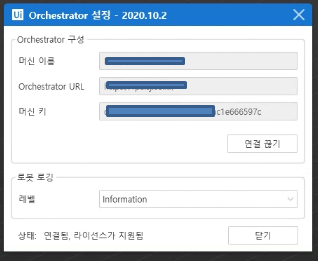 3. Robot으로 사용할 PC에 Uipath.Robot을 설치하고 Machine 키를 복사해서 붙여 넣어주면 된다.