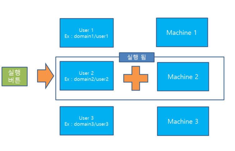그렇다면 any user, any machine을 선택했을 때 맨위에 있는 user(User 1)을 machine(Machine2) 가 선택돼서 실행이 된다....