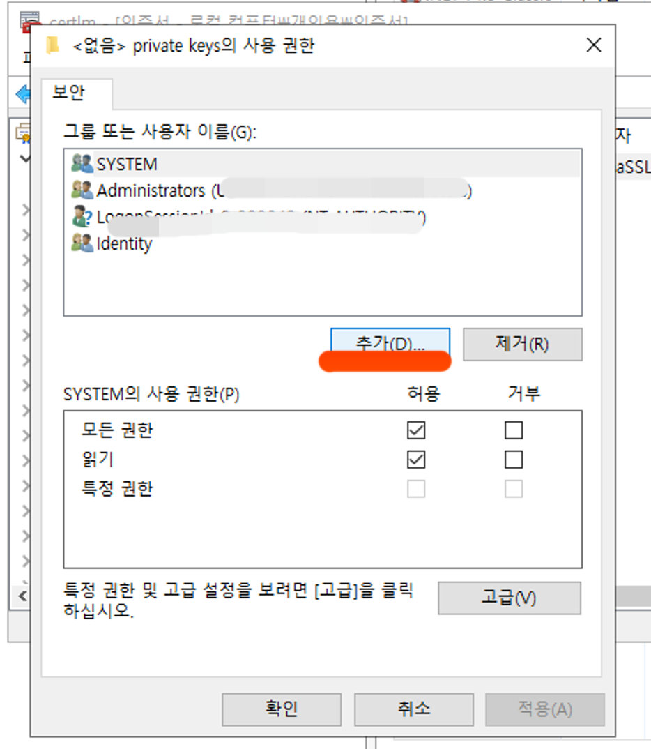 다음에는 해당 인증서 개인키에 접글할 수 있는 권한을 부여하기 위한 과정을 해보도록 하겠다.