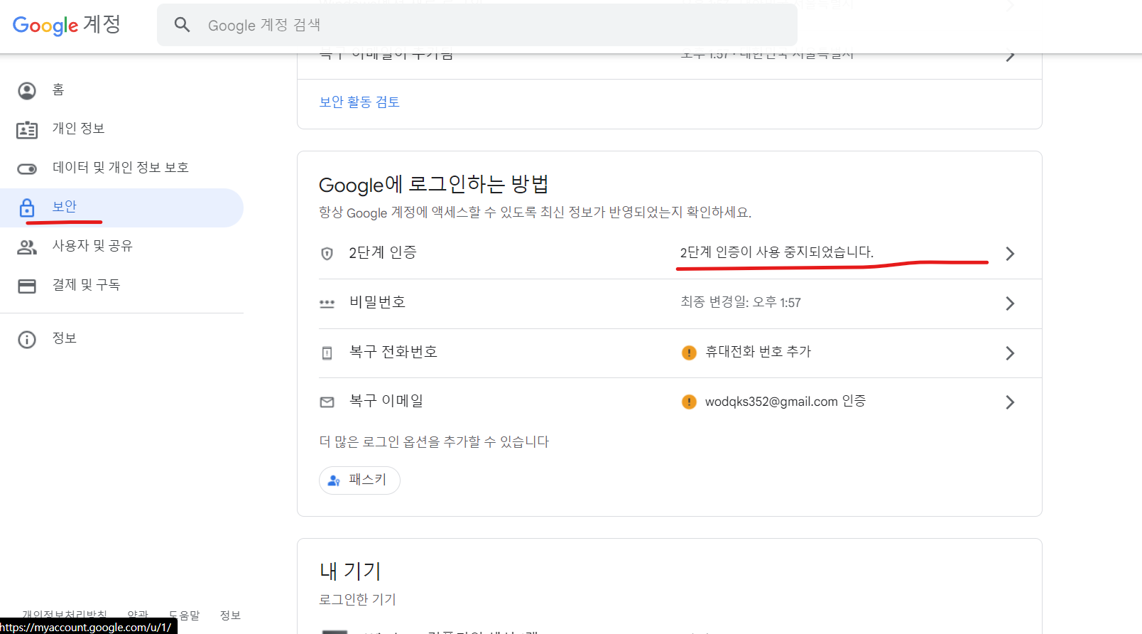 맨 밑으로 내리다 보면 아래와 같은 화면이 보인다.