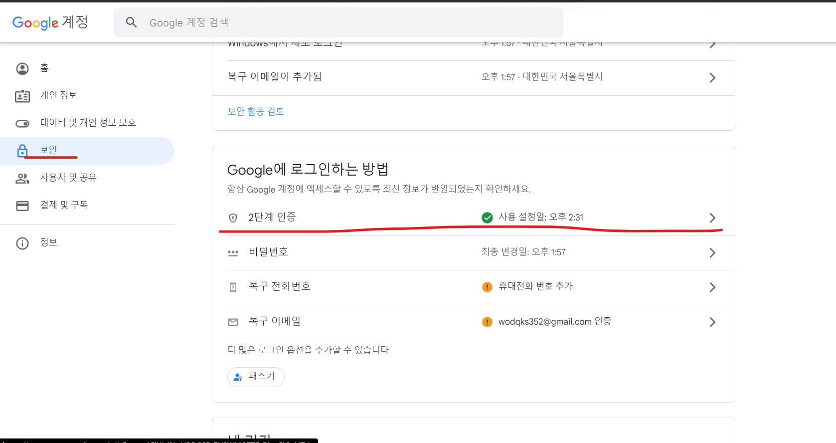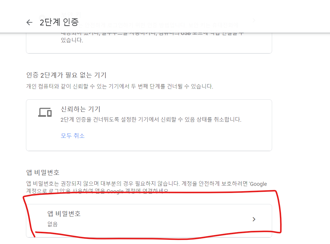 맨 밑으로 내리다 보면 아래와 같은 화면이 보인다.