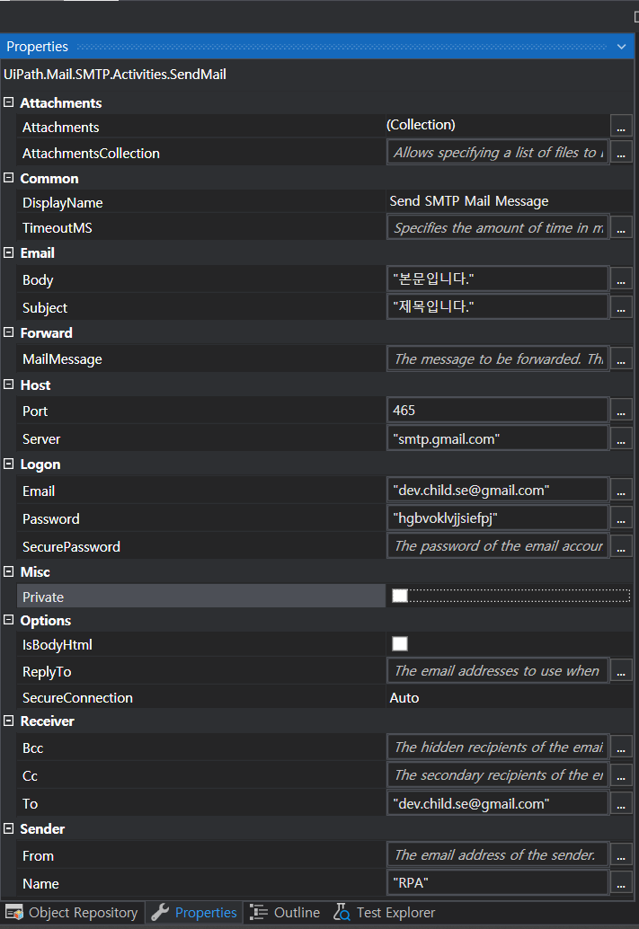 Uipath 에서 메일 전송관련 기능들이 많이 있지만 많이 사용하는 SMTP 방식으로 메일 전송 방법을 해보겠습니다.