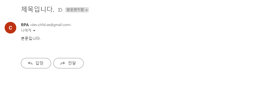 아래는 결과 메일이다. 잘 전송되는걸 확인 할 수 있다.