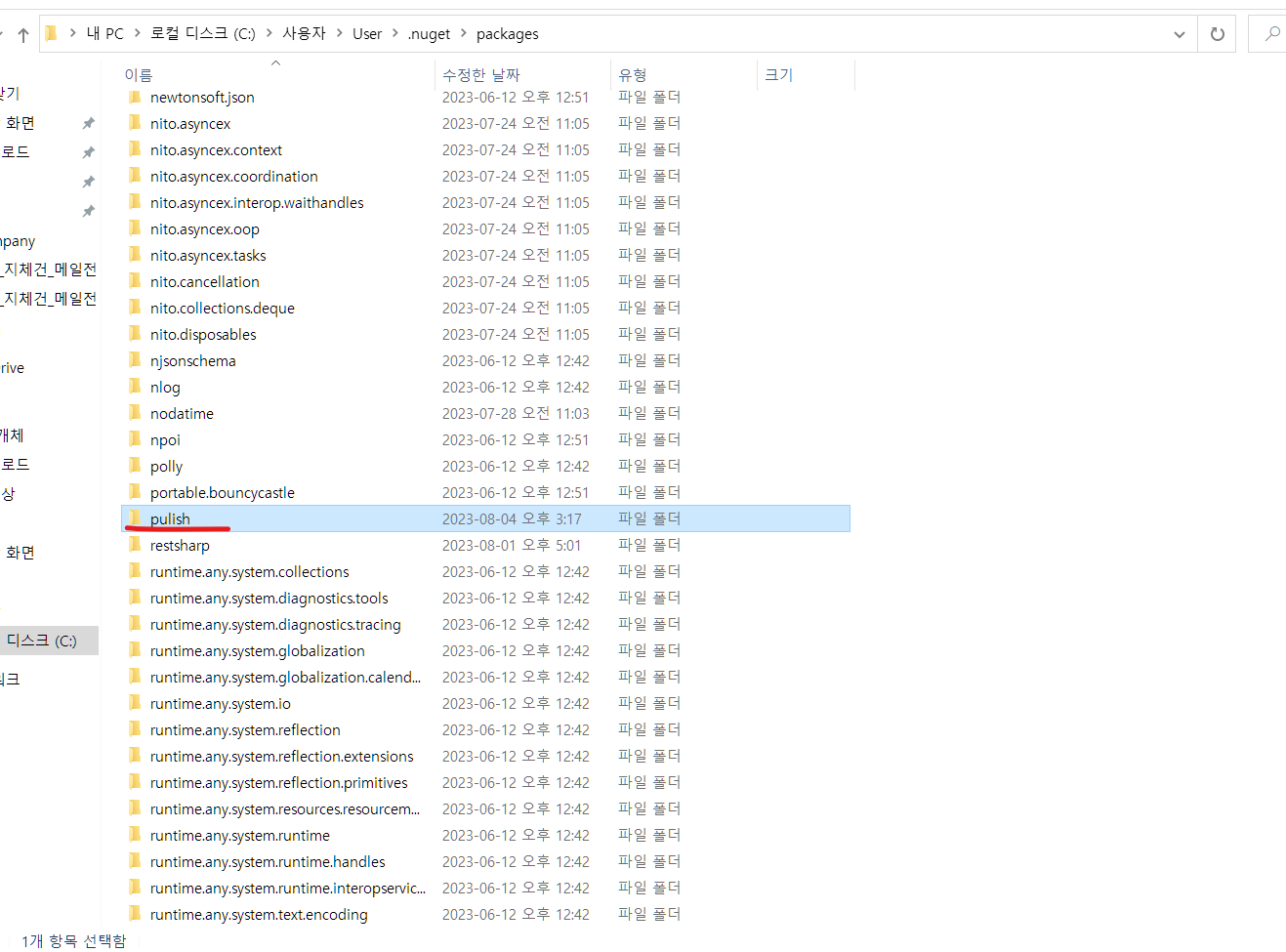 그럼 일단 nupkg 파일이 아래경로에 들어가는건 모두 아마 아실거에요.