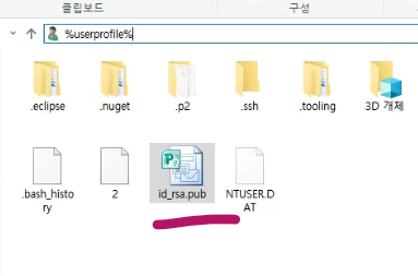 우선 전달받은 public key 는 %userprofile% 경로로 이동하면 보인다.
