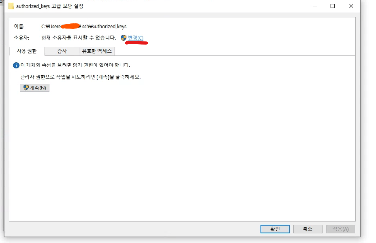 "$home\.ssh\authorized_keys" (ex:"C:\Users\User\.ssh\authorized_keys") 생성