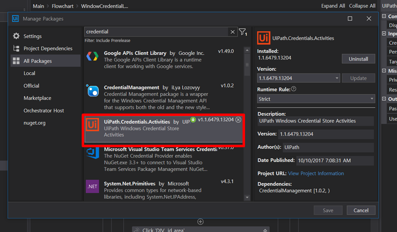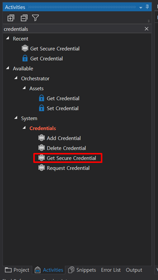 4. Activity 에서 [Get Secure Credential] Activity 생성