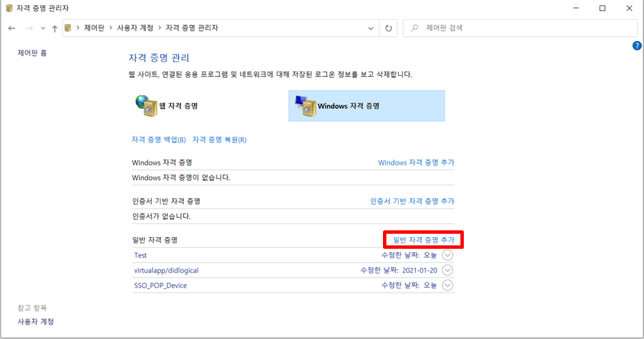 1.윈도우 자격증명에 로그인정보 입력하기